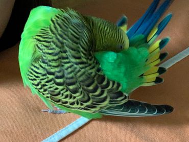 The way to tell if your parakeet is super healthy is if they are bright colored. Tiki and Elliot are VERY bright.